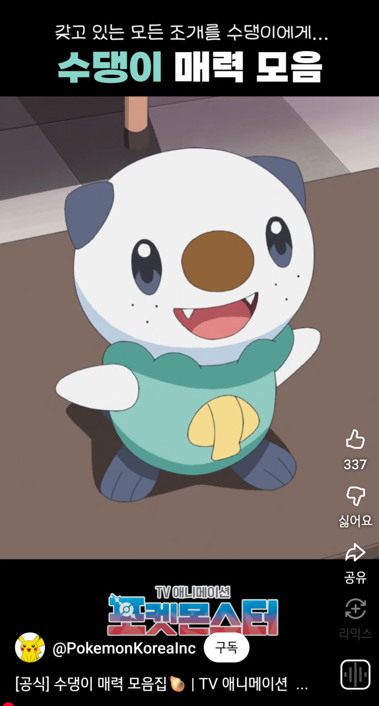 물 타입 스타팅 포켓몬 '수댕이' 입니다